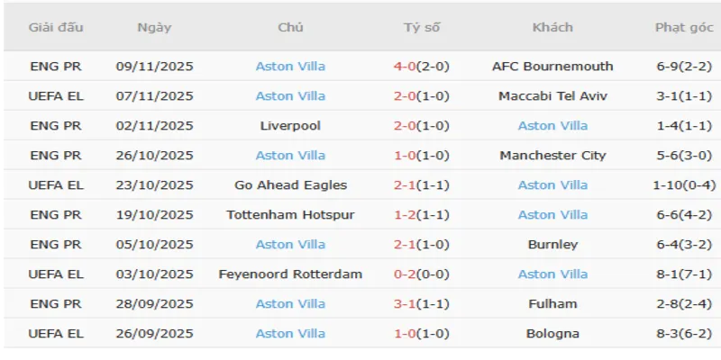 - Chọn kèo: Aston Villa -0.25 và Tài 2.25